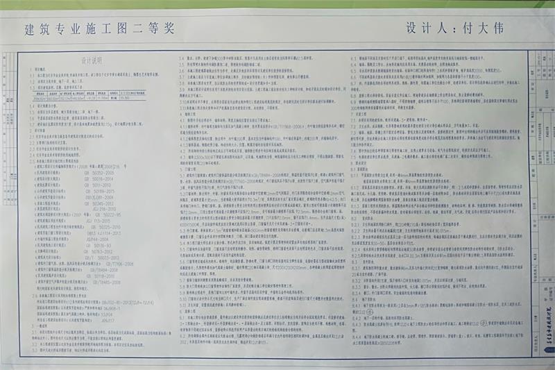 上圖為建筑專業(yè)二等獎(jiǎng)獲得者 付大偉 參選施工圖