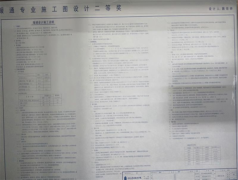 上圖為暖通專業(yè)二等獎(jiǎng)獲得者 魏領(lǐng)帥 參選施工圖