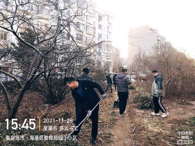 慰問(wèn)結(jié)束后,全體黨員以“清除雜草、美化環(huán)境”為主題,對(duì)園丁小區(qū)進(jìn)行了依次清掃樹(shù)葉雜草的主題黨日活動(dòng)。